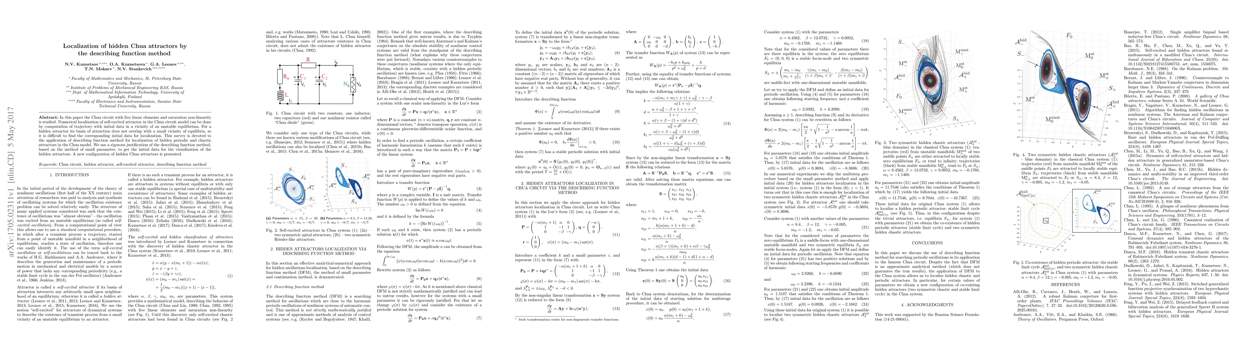 This paper explores the localization of hidden Chua attractors using the describing function method, focusing on the Chua circuit model with five linear elements and saturation non-linearity. The study provides a rigorous justification for the method, enabling the visualization of hidden periodic and chaotic attractors through computation of trajectories near unstable equilibria.
