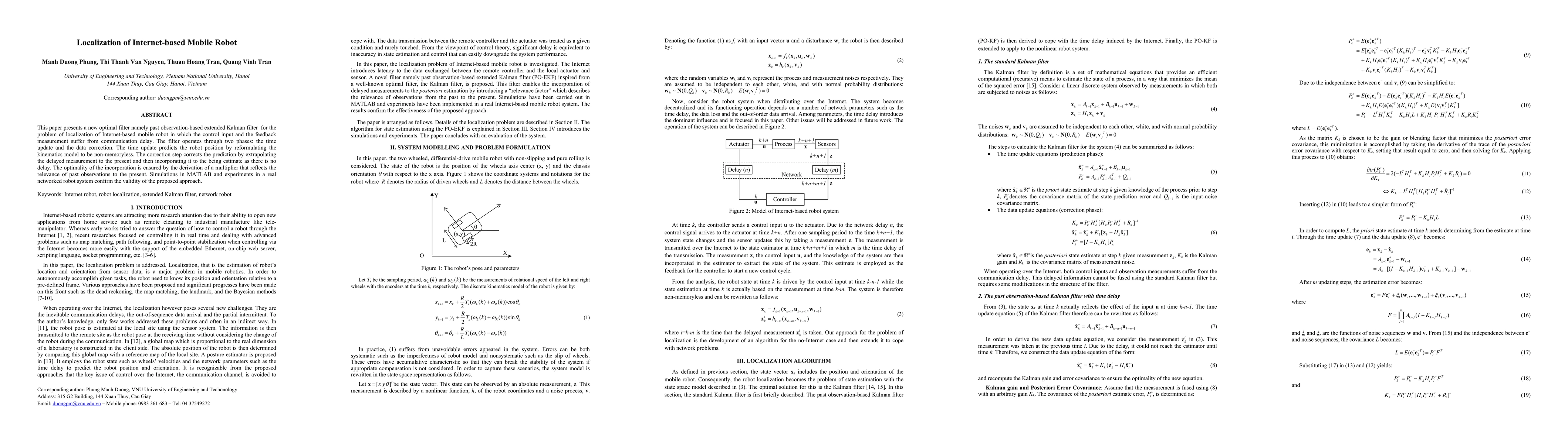 This paper introduces a novel past observation-based extended Kalman filter for localizing Internet-based mobile robots, addressing communication delays. The filter comprises time update and data correction phases, ensuring optimal integration of delayed measurements and validating the approach through MATLAB simulations and real-world experiments.