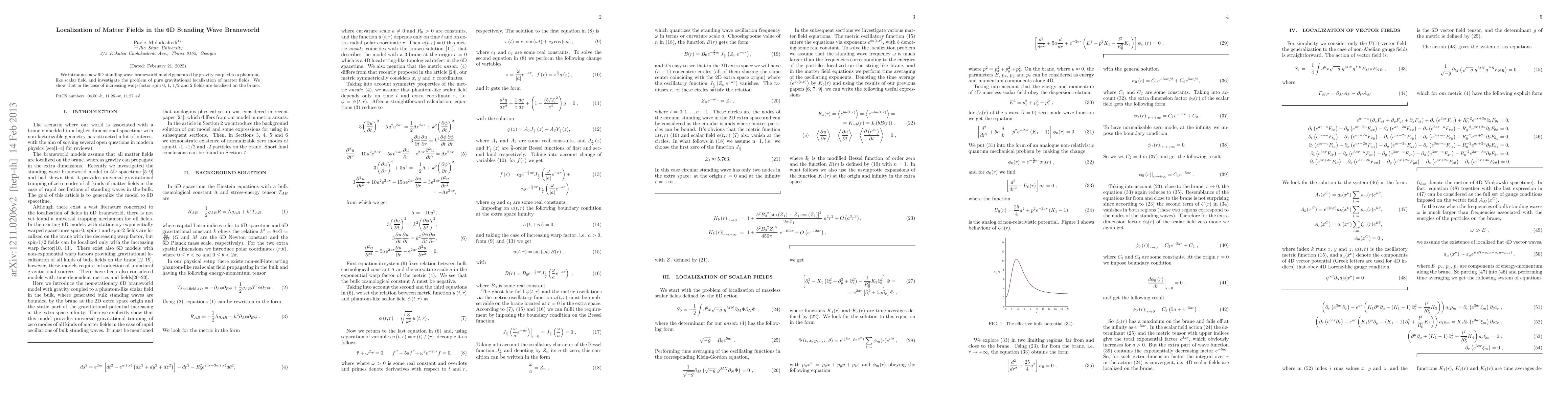 Researchers created a 6D standing wave braneworld model to study gravitational localization of matter fields. They found that specific spin values of the warp factor lead to localized fields on the brane.