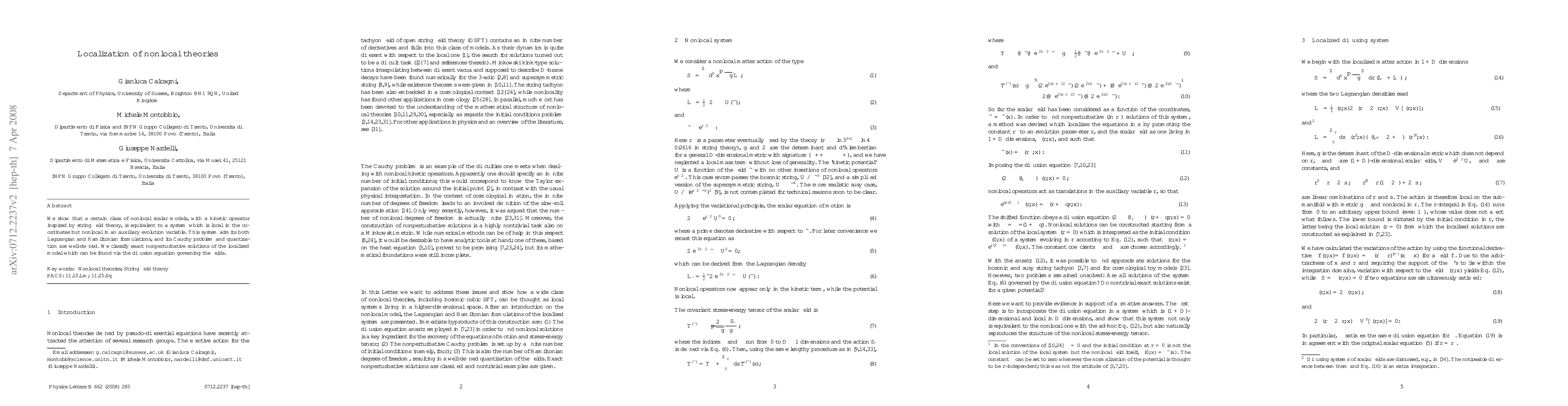 We show that a certain class of nonlocal scalar models, with a kinetic operator inspired by string field theory, is equivalent to a system which is local in the coordinates but nonlocal in an auxiliary evolution variable. This system admits both Lagrangian and Hamiltonian formulations, and its Cauchy problem and quantization are well-defined. We classify exact nonperturbative solutions of the localized model which can be found via the diffusion equation governing the fields.