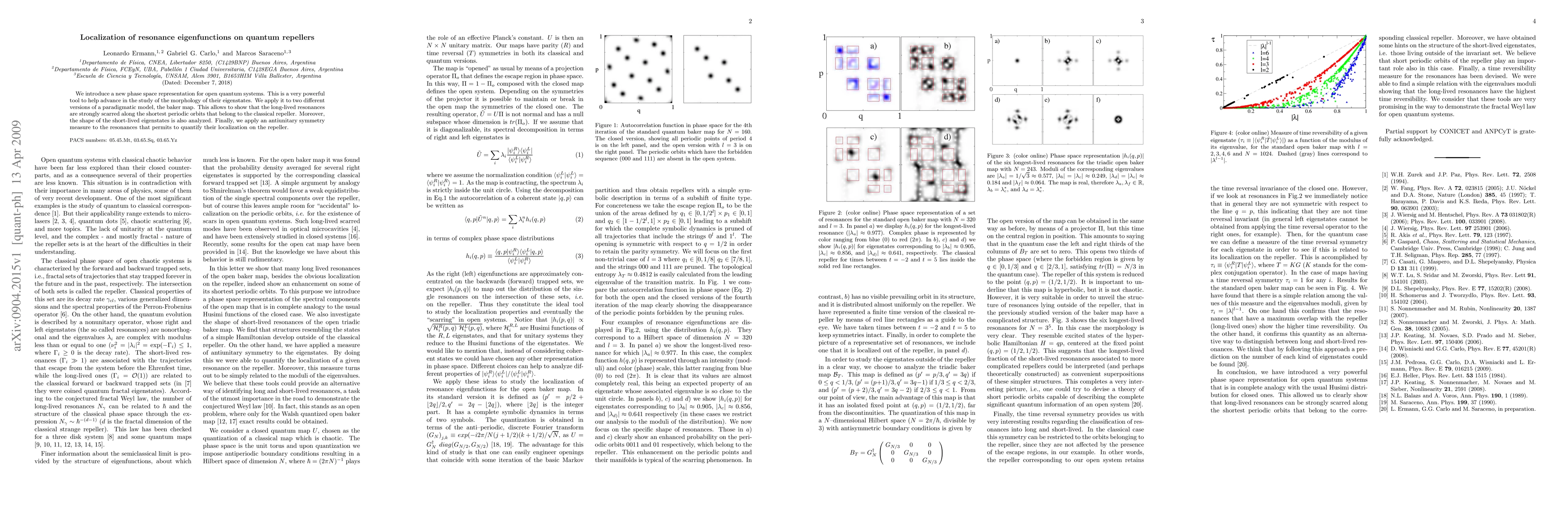 We introduce a new phase space representation for open quantum systems. This is a very powerful tool to help advance in the study of the morphology of their eigenstates. We apply it to two different versions of a paradigmatic model, the baker map. This allows to show that the long-lived resonances are strongly scarred along the shortest periodic orbits that belong to the classical repeller. Moreover, the shape of the short-lived eigenstates is also analyzed. Finally, we apply an antiunitary symmetry measure to the resonances that permits to quantify their localization on the repeller.