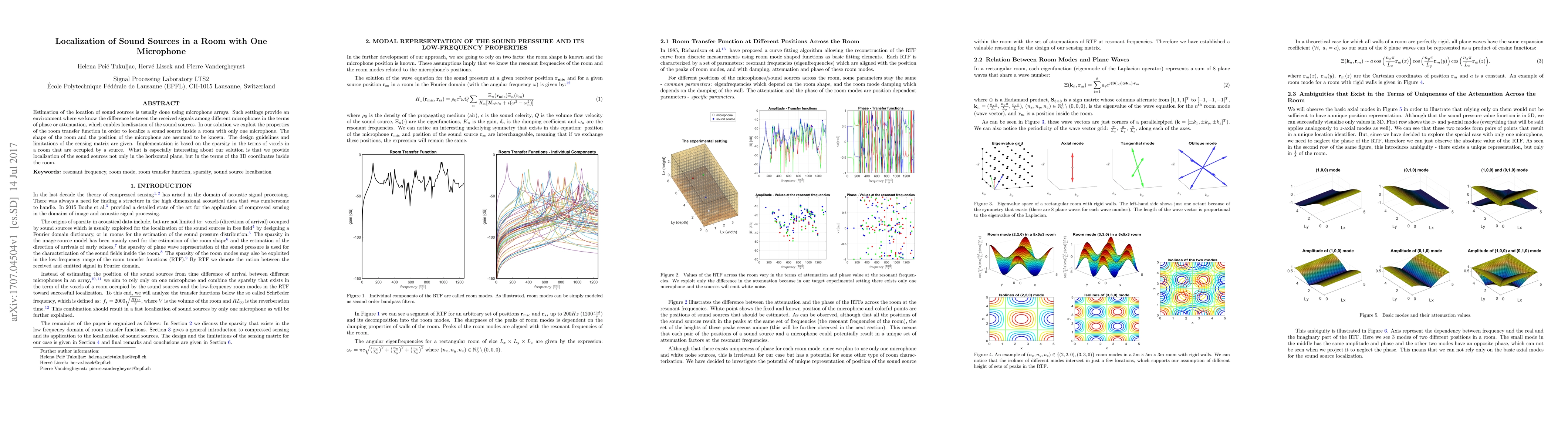 This paper presents a method for localizing sound sources within a room using only one microphone, leveraging the room's transfer function and spatial sparsity. It provides 3D localization capabilities by considering the room's shape and microphone position, detailing design guidelines and limitations.