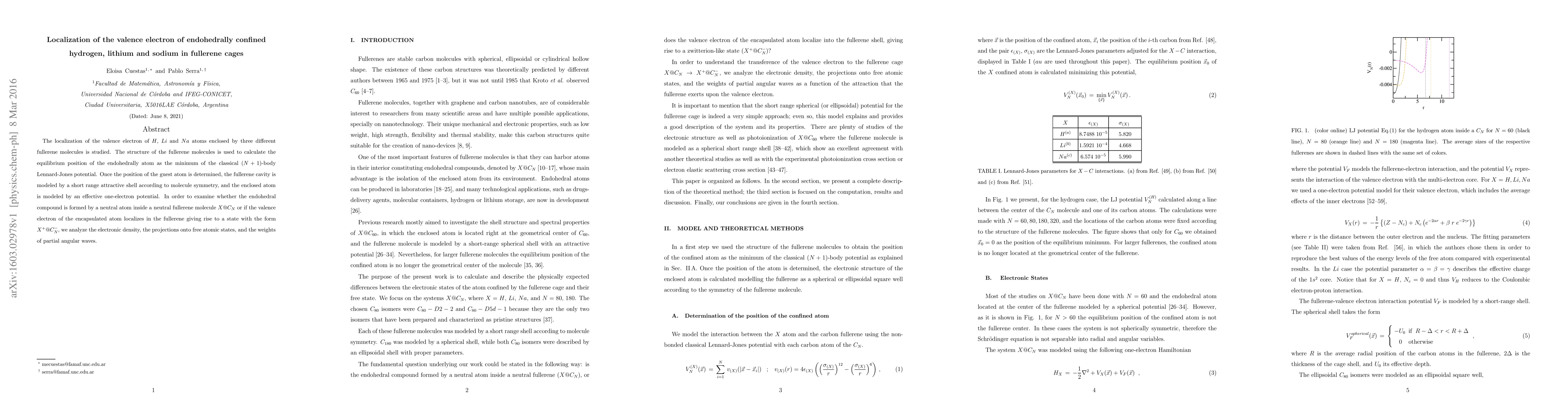 This paper investigates the localization of valence electrons in endohedrally confined hydrogen, lithium, and sodium atoms within fullerene cages, using a classical potential model to determine atom positions and analyzing electronic density and angular wave functions to determine if the valence electron localizes within the fullerene.