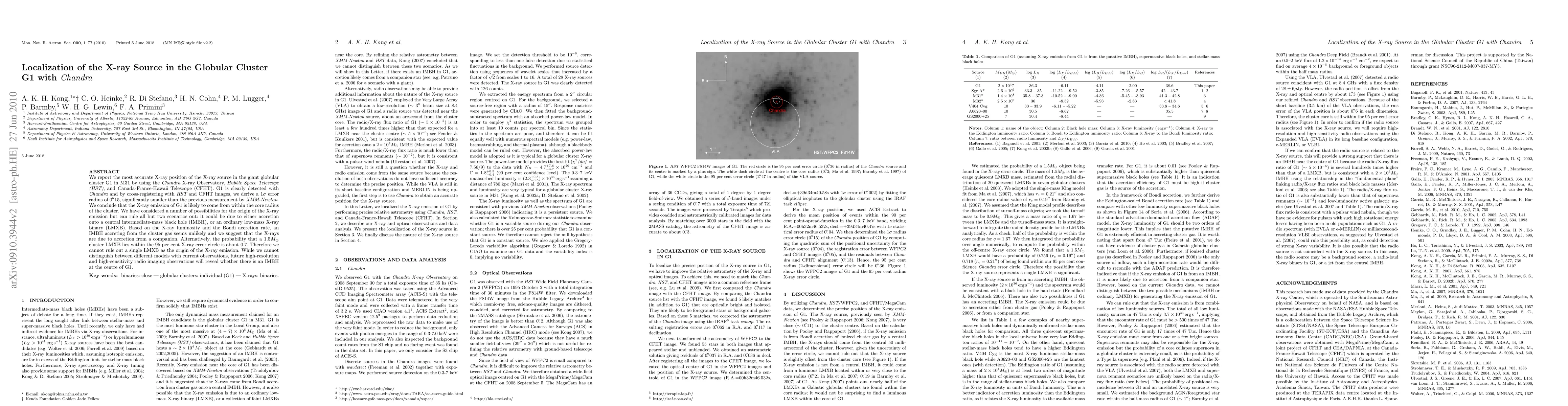 This paper reports the most precise X-ray position of the source in the globular cluster G1 using Chandra, HST, and CFHT, achieving a 1-sigma error radius of 0.15 arcsec. The X-ray emission is likely from within the cluster core, possibly due to an ordinary low-mass X-ray binary or accretion onto a central intermediate-mass black hole.