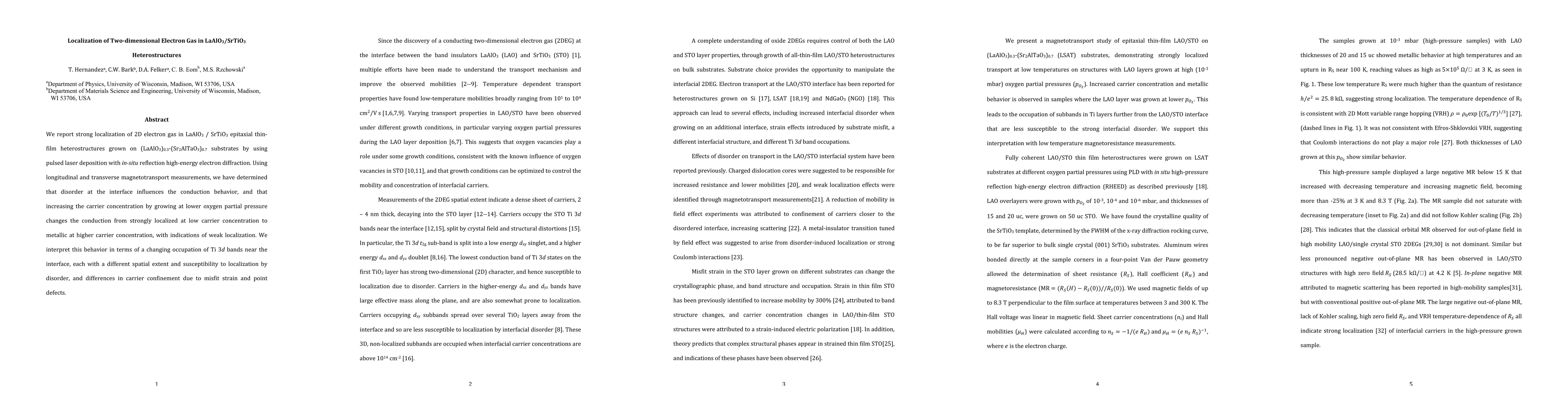 Researchers found that growing LaAlO3/SrTiO3 heterostructures at lower oxygen partial pressure leads to a transition from strongly localized 2D electron gas to metallic behavior, with indications of weak localization due to changes in Ti 3d band occupation and carrier confinement.