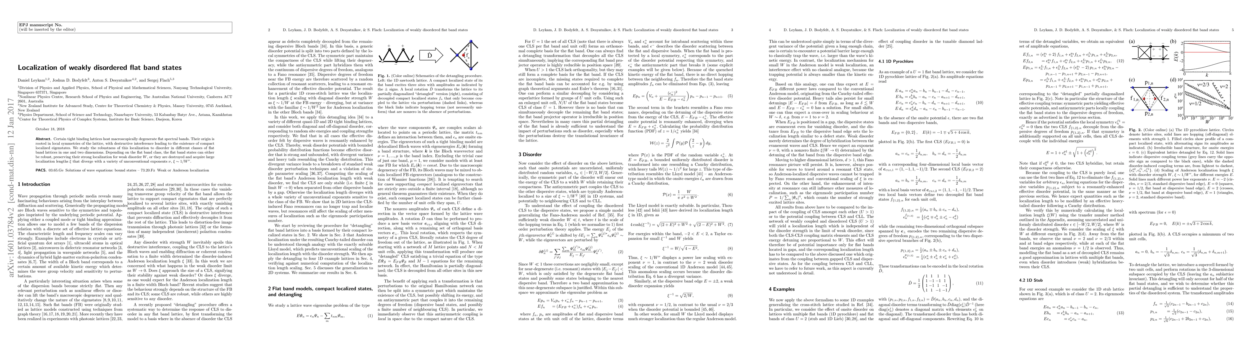 This paper investigates how weakly disordered flat band states in tight binding lattices maintain or lose their localization properties. It finds that the robustness of localization depends on the specific class of flat band, with some states remaining strongly localized under weak disorder and others transitioning to extended states with unconventional divergence in localization length.