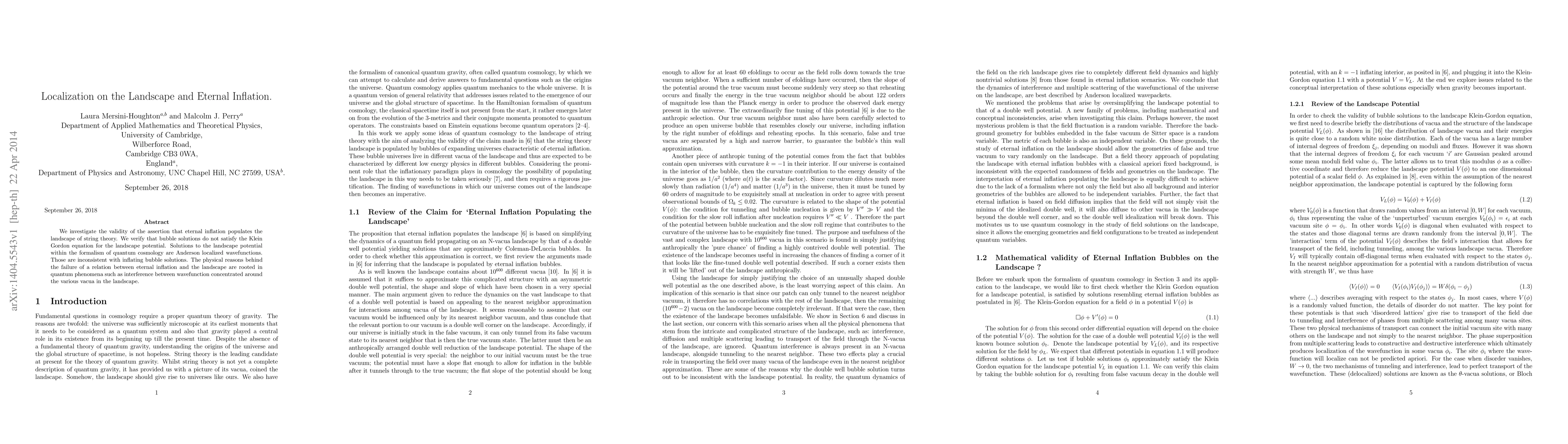 This paper examines the claim that eternal inflation populates the string theory landscape, finding that bubble solutions do not satisfy the Klein Gordon equation for the landscape potential. Instead, quantum cosmology solutions are Anderson localized wavefunctions, which are incompatible with inflating bubble solutions, due to quantum interference effects.