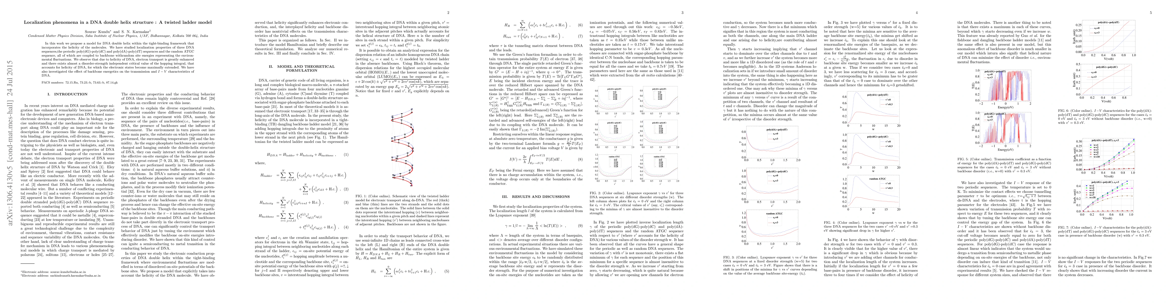 In this work we propose a model for DNA double helix within the tight-binding framework that incorporates the helicity of the molecules. We have studied localization properties of three DNAsequences,the periodic poly(dG)-poly(dC) and poly(dA)-poly(dT) sequences and the random ATGCsequence, all of which are coupled to backbone withrandom site energies representing the environmentalfluctuations. We observe that due to helicity of DNA, electron transport is greatly enhancedand there exists almost a disorder-strength independent critical value of the hopping integral, thataccounts for helicity of DNA, for which the electronic states become maximally extended. We havealso investigated the effect of backbone energetics on the transmission and I-V characteristics of DNA.