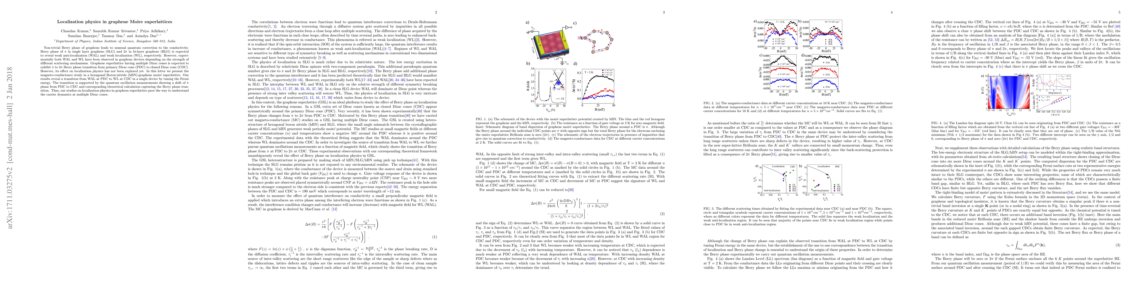 Non-trivial Berry phase of graphene leads to unusual quantum correction to the conductivity. Berry phase of pi in single layer graphene (SLG) and 2pi in bi-layer graphene (BLG) is expected to reveal weak anti-localization (WAL) and weak localization (WL), respectively. However, experimentally both WAL and WL have been observed in graphene devices depending on the strength of different scattering mechanisms. Graphene superlattice having multiple Dirac cones is expected to exhibit pi to 2pi Berry phase transition from primary Dirac cone (PDC) to cloned Dirac cone (CDC). However, its effect on localization physics has not been explored yet. In this letter we present the magneto-conductance study in a hexagonal Boron-nitride (hBN)-graphene moire superlattice. Our results reveal a transition from WAL at PDC to WL at CDC in a single device by tuning the Fermi energy. The transition is supported by the quantum oscillation measurements showing a shift of pi phase from PDC to CDC and corresponding theoretical calculation capturing the Berry phase transition. Thus, our studies on localization physics in graphene superlattice pave the way to understand the carrier dynamics at multiple Dirac cones.