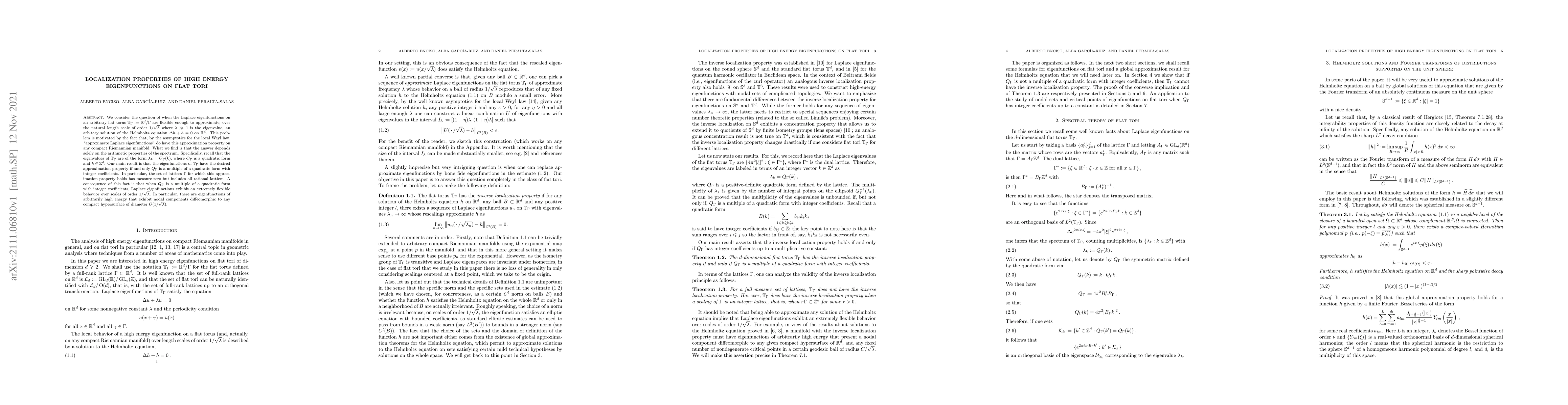 We consider the question of when the Laplace eigenfunctions on an arbitrary flat torus $\mathbf{T}_\Gamma:=\mathbf{R}^d/\Gamma$ are flexible enough to approximate, over the natural length scale of order $1/\sqrt\lambda$, where $\lambda\gg1$ is the eigenvalue, an arbitary solution of the Helmholtz equation $\Delta h + h=0$ on $\mathbf{R}^d$. This problem is motivated by the fact that, by the asymptotics for the local Weyl law, "approximate Laplace eigenfunctions" do have this approximation property on any compact Riemannian manifold. What we find is that the answer depends solely on the arithmetic properties of the spectrum. Specifically, recall that the eigenvalues of $\mathbf{T}_\Gamma$ are of the form $\lambda_k=Q_\Gamma(k)$, where $Q_\Gamma$ is a quadratic form and $k \in \mathbf{Z}^d$. Our main result is that the eigenfunctions of $\mathbf{T}_\Gamma$ have the desired approximation property if and only $Q_\Gamma$ is a multiple of a quadratic form with integer coefficients. In particular, the set of lattices $\Gamma$ for which this approximation property holds has measure zero but includes all rational lattices. A consequence of this fact is that when $Q_\Gamma$ is a multiple of a quadratic form with integer coefficients, Laplace eigenfunctions exhibit an extremely flexible behavior over scales of order $1/\sqrt\lambda$. In particular, there are eigenfunctions of arbitrarily high energy that exhibit nodal components diffeomorphic to any compact hypersurface of diameter $O(1/\sqrt\lambda)$.