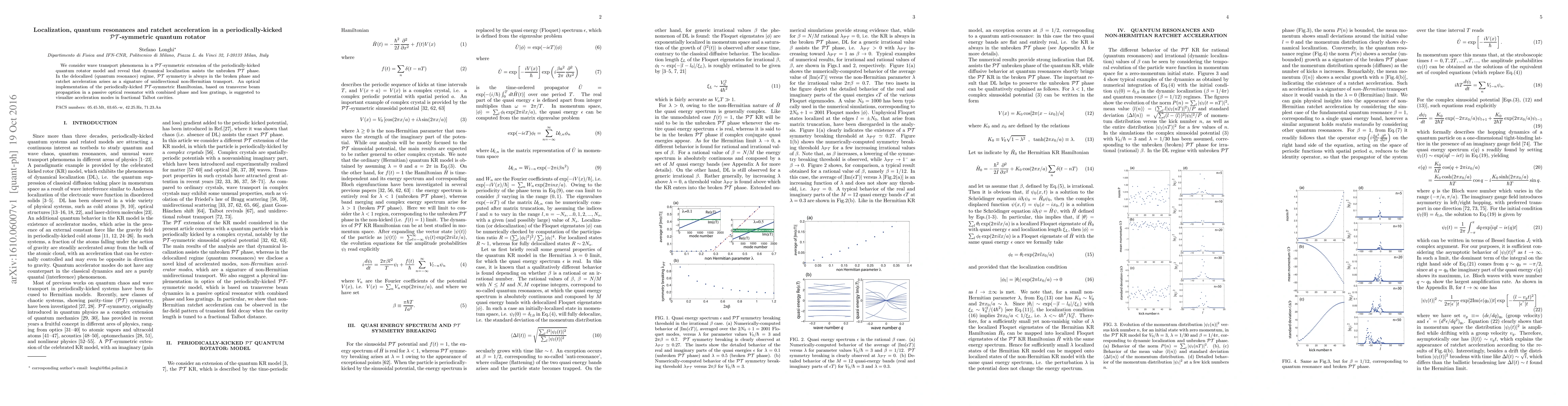 We consider wave transport phenomena in a $\mathcal{PT}$-symmetric extension of the periodically-kicked quantum rotator model and reveal that dynamical localization assists the unbroken $\mathcal{PT}$ phase. In the delocalized (quantum resonance) regime, $\mathcal{PT}$ symmetry is always in the broken phase and ratchet acceleration arises as a signature of unidirectional non-Hermitian transport. An optical implementation of the periodically-kicked $\mathcal{PT}$-symmetric Hamiltonian, based on transverse beam propagation in a passive optical resonator with combined phase and loss gratings, is suggested to visualize acceleration modes in fractional Talbot cavities.
