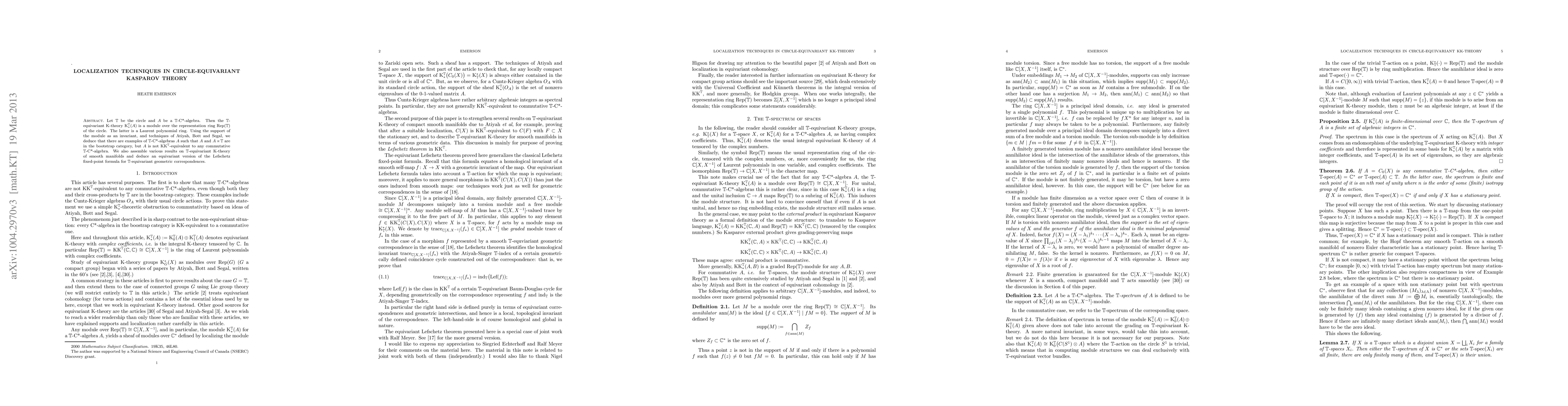 This paper explores localization techniques in circle-equivariant KK-theory, demonstrating that certain T-C*-algebras are not KK^T-equivalent to commutative T-C*-algebras, contrasting with the non-equivariant case. It also proves an equivariant version of the Lefschetz fixed-point formula and provides a comprehensive description of T-equivariant K-theory using localization methods.