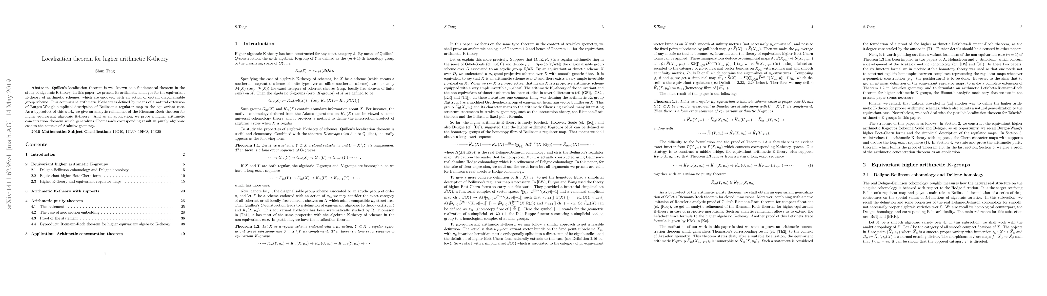This paper extends Quillen's localization theorem to equivariant arithmetic K-theory of schemes with diagonalisable group actions, refining the Riemann-Roch theorem and proving a higher arithmetic concentration theorem in Arakelov geometry.