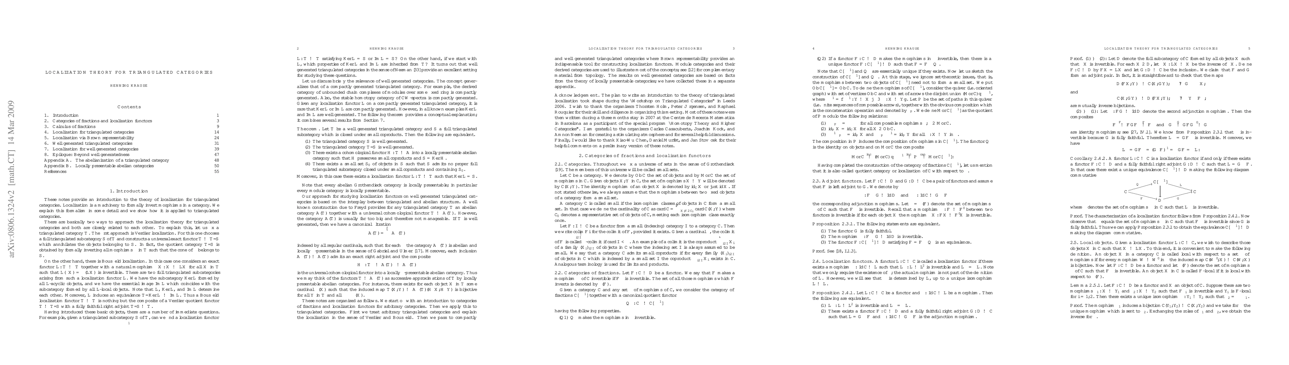 Summary: This paper introduces the theory of localization in triangulated categories, explaining the formalism of formally inverting morphisms and demonstrating its application within this mathematical framework.