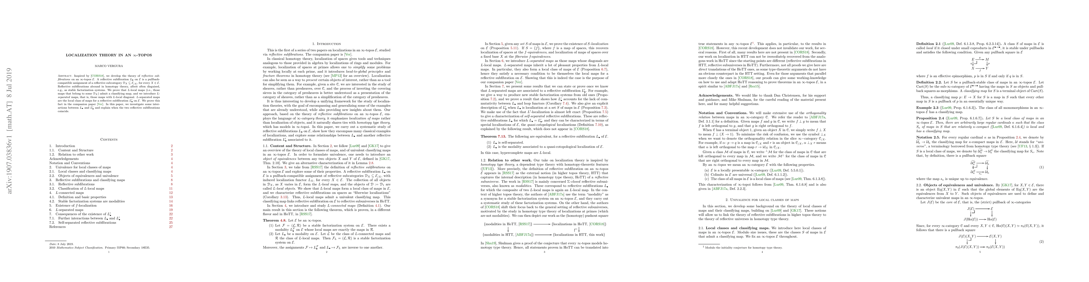 This paper develops the theory of reflective subfibrations on an $\infty$-topos $\mathcal{E}$ and shows that $L$-local maps admit classifying maps. It also introduces $L$-separated maps, establishing their role as the local class for another reflective subfibration $L'_\bullet$, and examines conditions under which $L_\bullet$ and $L'_\bullet$ coincide.