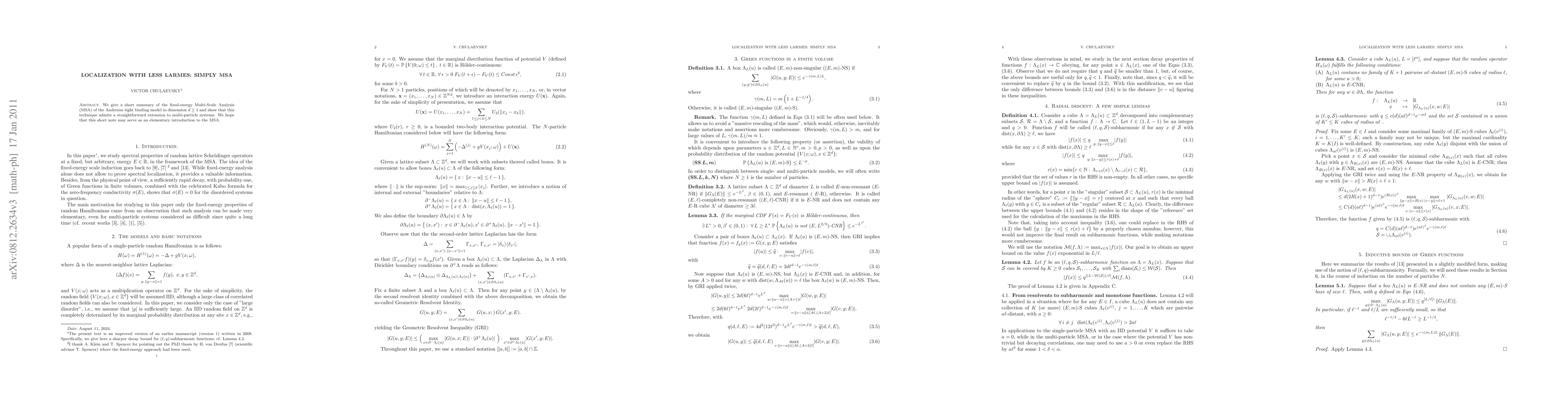 We give a short summary of the fixed-energy Multi-Scale Analysis (MSA) of the Anderson tight binding model in dimension $d\ge 1$ and show that this technique admits a straightforward extension to multi-particle systems. We hope that this short note may serve as an elementary introduction to the MSA.