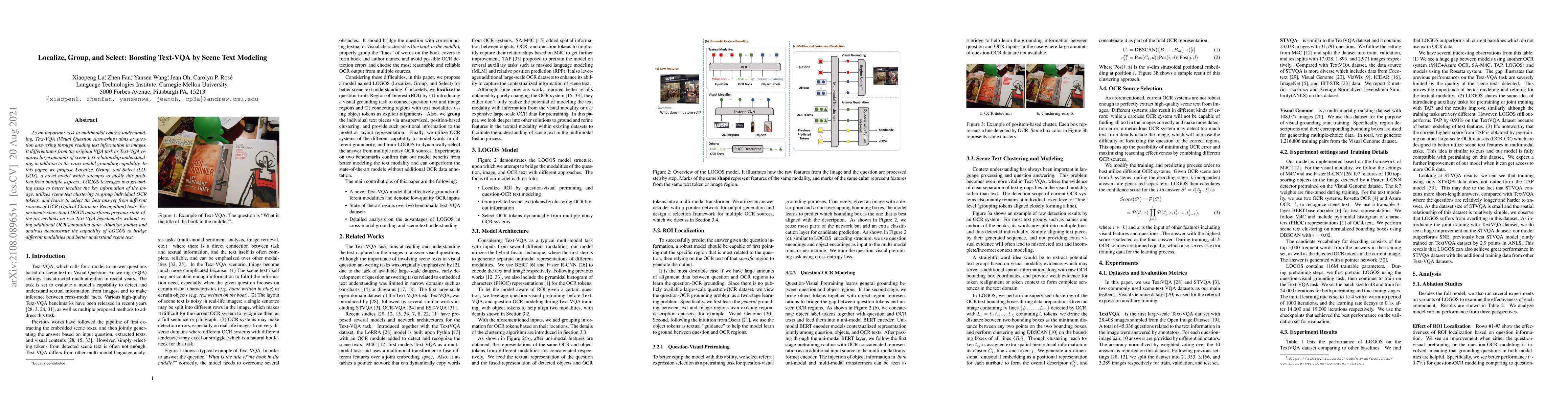 This paper introduces LOGOS, a model for Text-VQA that localizes key image information, groups OCR tokens via clustering, and selects the best answers from OCR texts, outperforming previous methods on benchmarks without additional OCR data. LOGOS demonstrates improved multimodal understanding and scene text relationship comprehension.