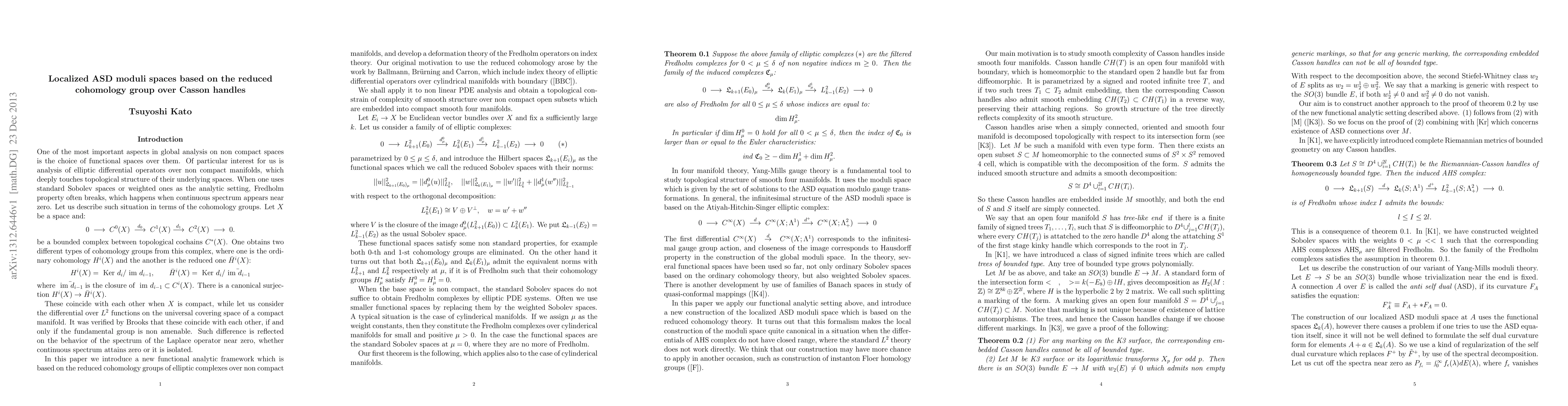 In this paper, we introduce a deformation analysis of index theory over non compact manifolds, by use of new functional spaces which are the reduced version of Sobolev spaces. It allows to construct Fredholm theory for elliptic differential operators over non compact spaces which possibly do not have closed range with respect to the standard Sobolev spaces. We apply it to construct moduli theory mainly over Casson handles, and obtain another approach to see high complexity of their smooth structure.
