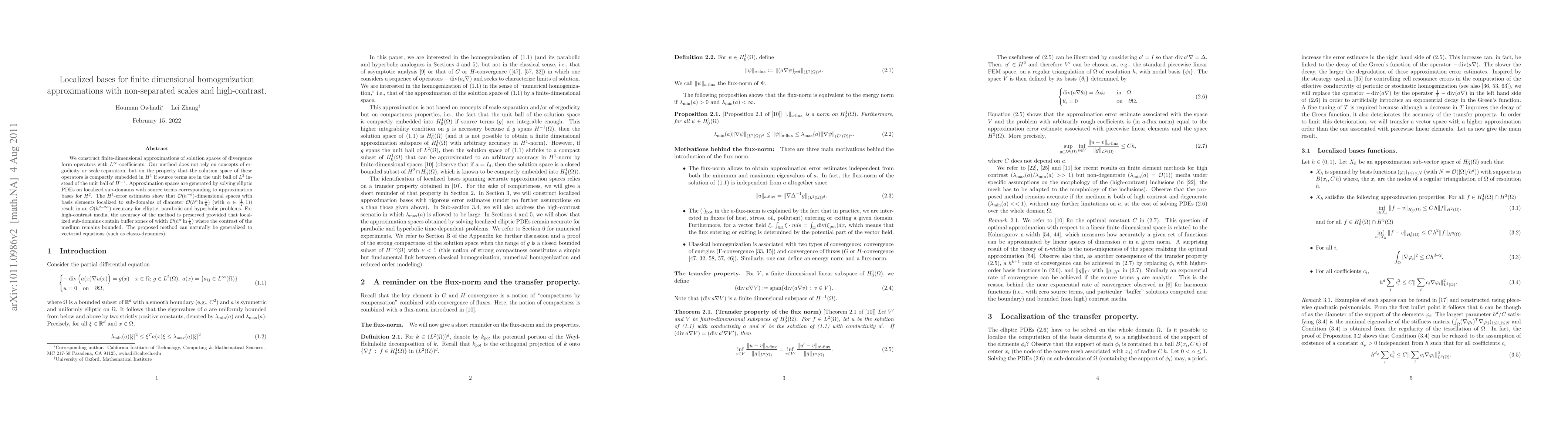 This paper develops finite-dimensional approximations for divergence form operators with high-contrast, non-separated scale coefficients, using localized sub-domains and elliptic PDEs without relying on ergodicity or scale-separation. The method achieves $\mathcal{O}(h^{2-2\alpha})$ accuracy for various PDEs, preserving accuracy in high-contrast media with appropriately sized buffer zones.