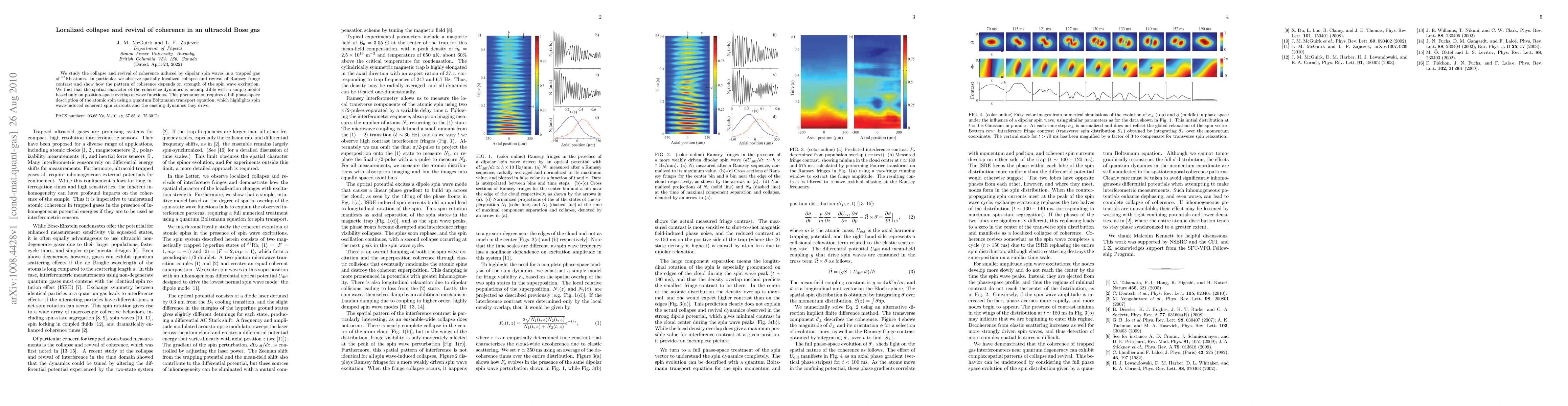 This study investigates the collapse and revival of coherence in an ultracold Bose gas of Rb-87 atoms due to dipolar spin waves, revealing spatially localized patterns that cannot be explained by simple wave function overlap, necessitating a quantum Boltzmann transport equation to describe coherent spin currents and dynamics.