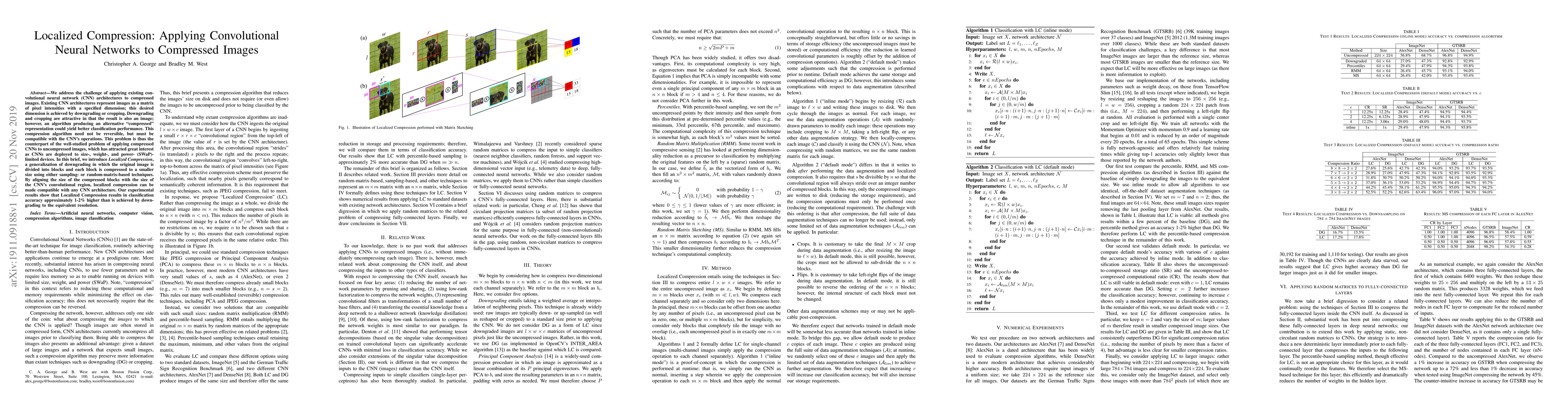 Researchers developed Localized Compression, a technique to apply CNNs to compressed images, achieving accuracy 1-2% higher than downgrading equivalent resolution.