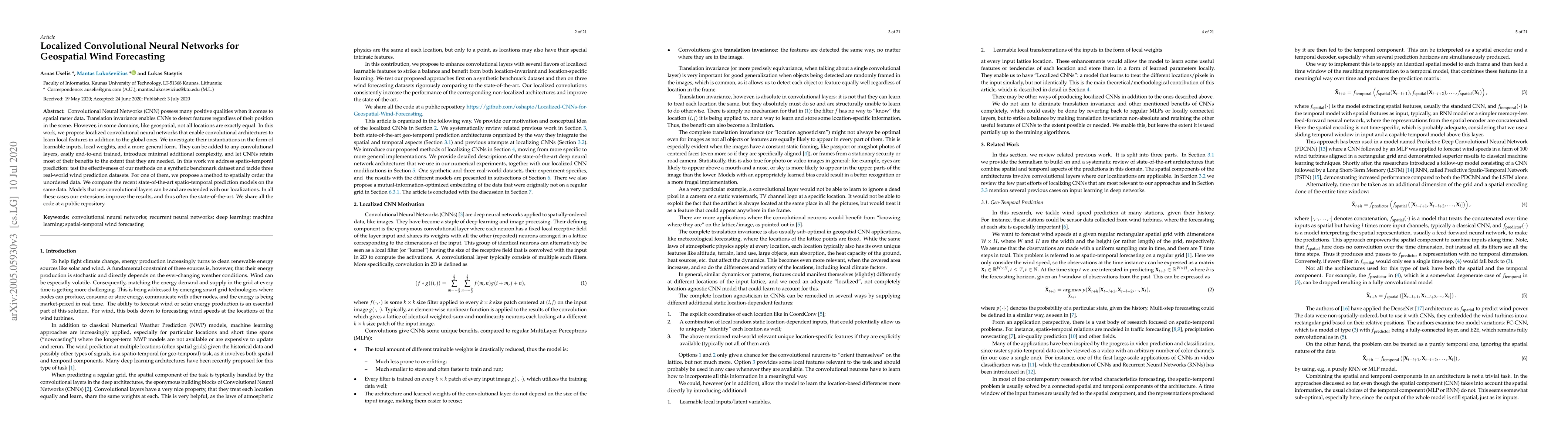 This paper proposes localized convolutional neural networks for geospatial wind forecasting, which improve results over state-of-the-art models by leveraging local features.