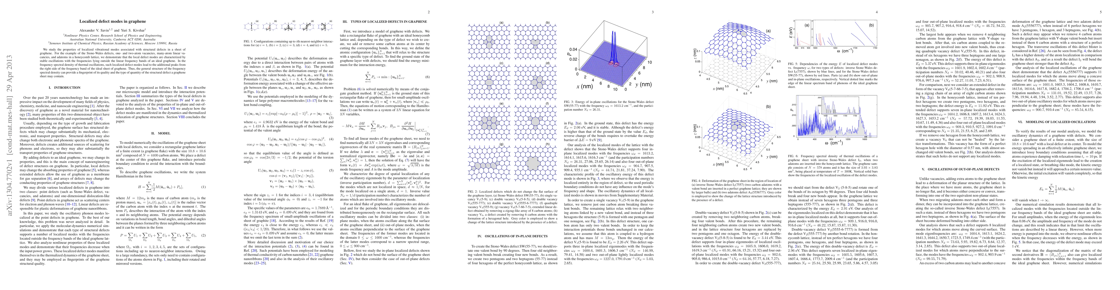 Graphene sheet defects cause unique vibrational modes with distinct frequencies outside ideal graphene's frequency range, providing a fingerprint of defect quality and type.