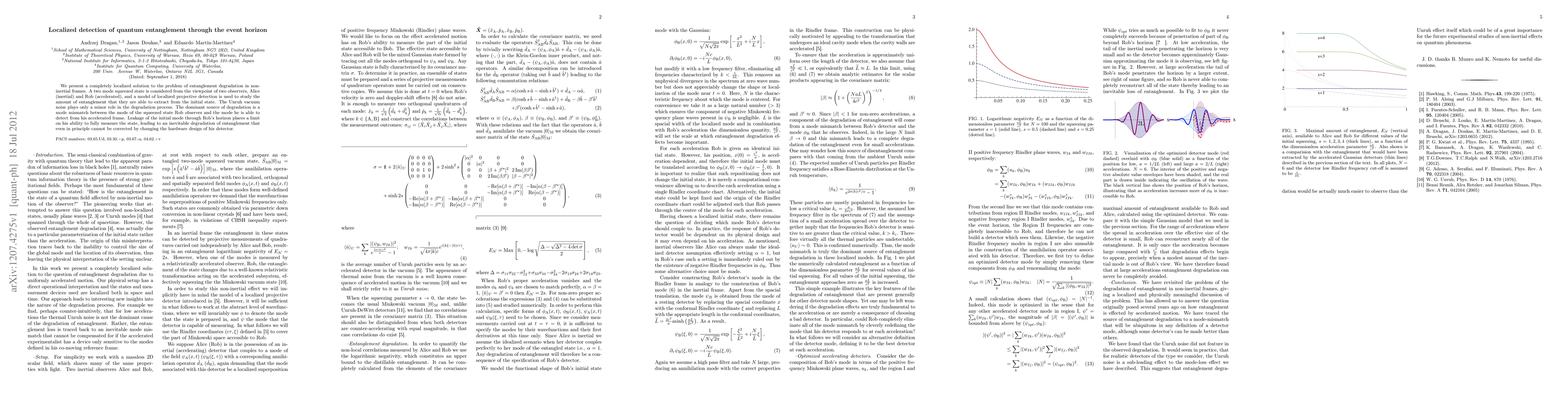 We present a completely localized solution to the problem of entanglement degradation in non-inertial frames. A two mode squeezed state is considered from the viewpoint of two observers, Alice (inertial) and Rob (accelerated), and a model of localized projective detection is used to study the amount of entanglement that they are able to extract from the initial state. The Unruh vacuum noise plays only a minor role in the degradation process. The dominant source of degradation is a mode mismatch between the mode of the squeezed state Rob observes and the mode he is able to detect from his accelerated frame. Leakage of the initial mode through Rob's horizon places a limit on his ability to fully measure the state, leading to an inevitable degradation of entanglement that even in principle cannot be corrected by changing the hardware design of his detector.
