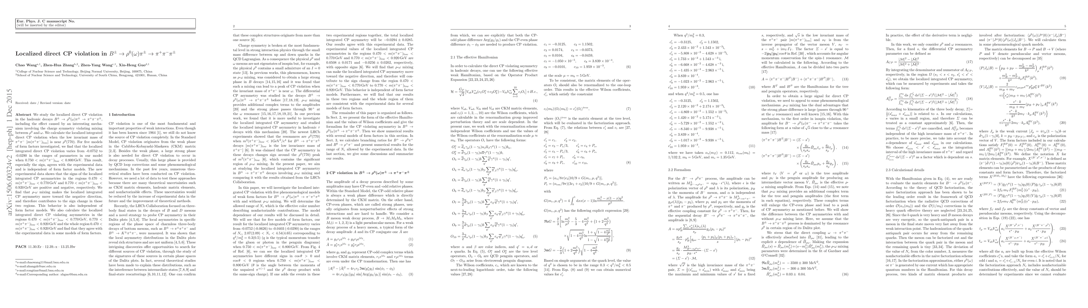 The paper presents a detailed analysis of direct CP violation in B±→ρ0(ω)π± decays, incorporating ρ-ω mixing and comparing results with experimental data across various form factor models.