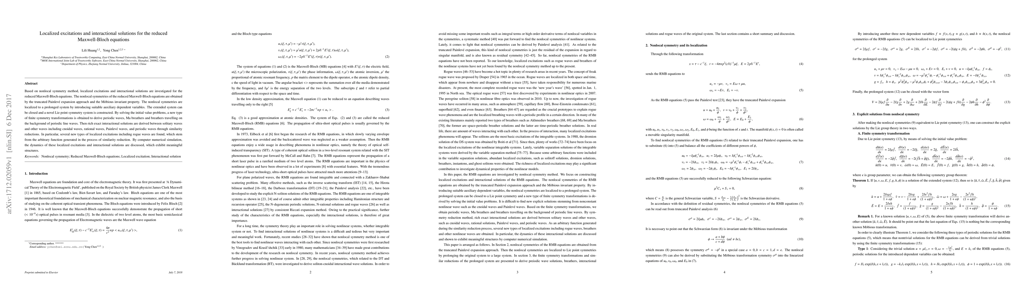 This paper investigates localized excitations and interactional solutions for the reduced Maxwell-Bloch equations using the nonlocal symmetry method. It derives novel periodic waves, Ma breathers, and rogue waves through finite symmetry transformations and similarity reductions, showcasing meaningful dynamic structures via numerical simulations.