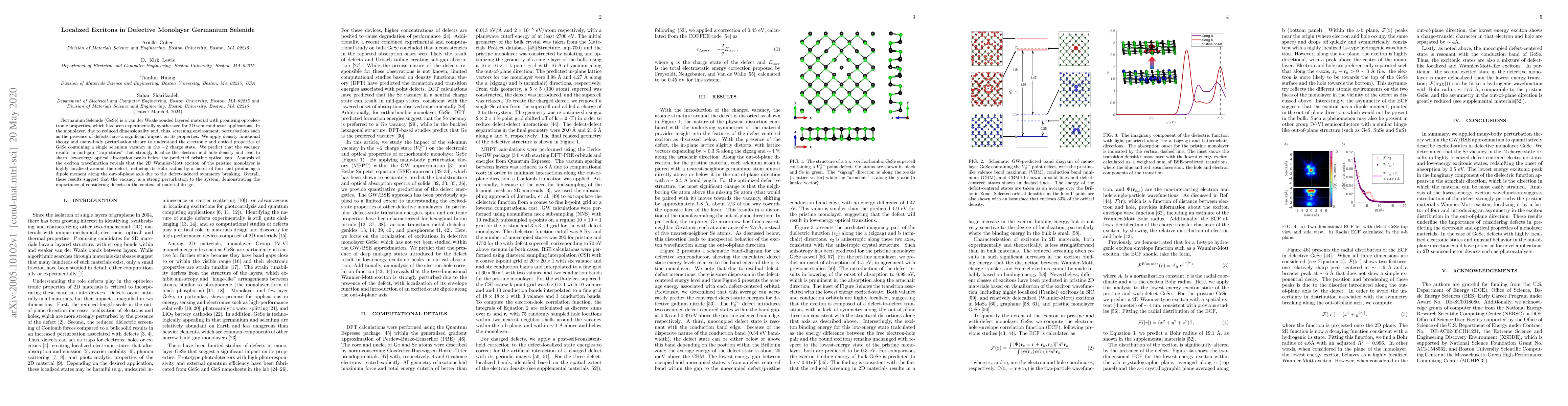 A density functional theory study reveals that a single selenium vacancy in monolayer Germanium Selenide creates strong localization of electrons and holes, leading to sharp optical absorption peaks and a highly localized 2D Wannier-Mott exciton.