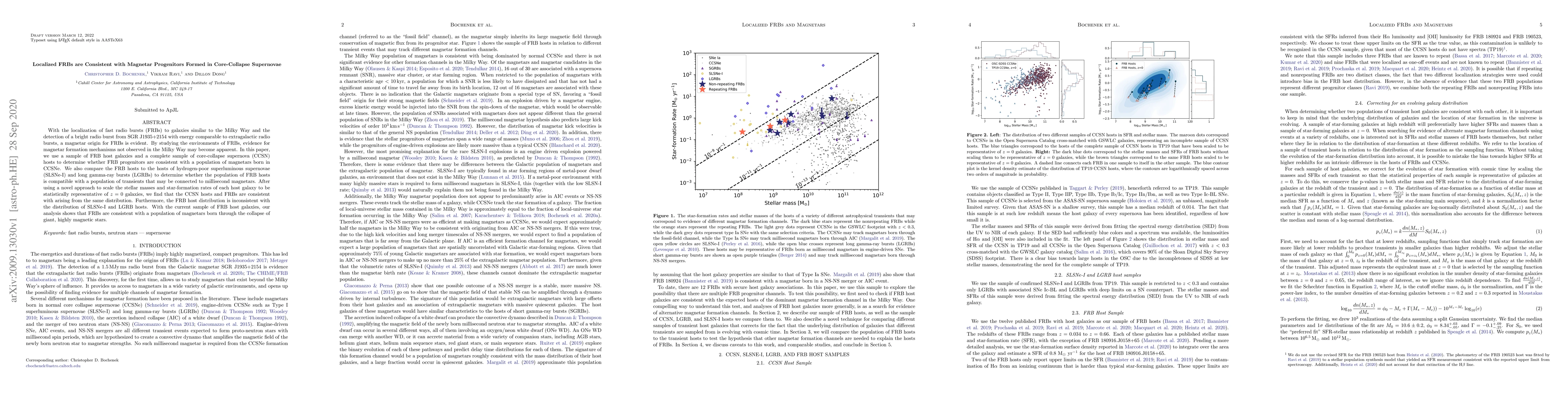 This paper investigates whether fast radio bursts (FRBs) originate from magnetars formed in core-collapse supernovae (CCSNe). The study finds that FRB host galaxies align with CCSN hosts, suggesting a magnetar origin, while differing from hosts of other transients like SLSNe-I and LGRBs.