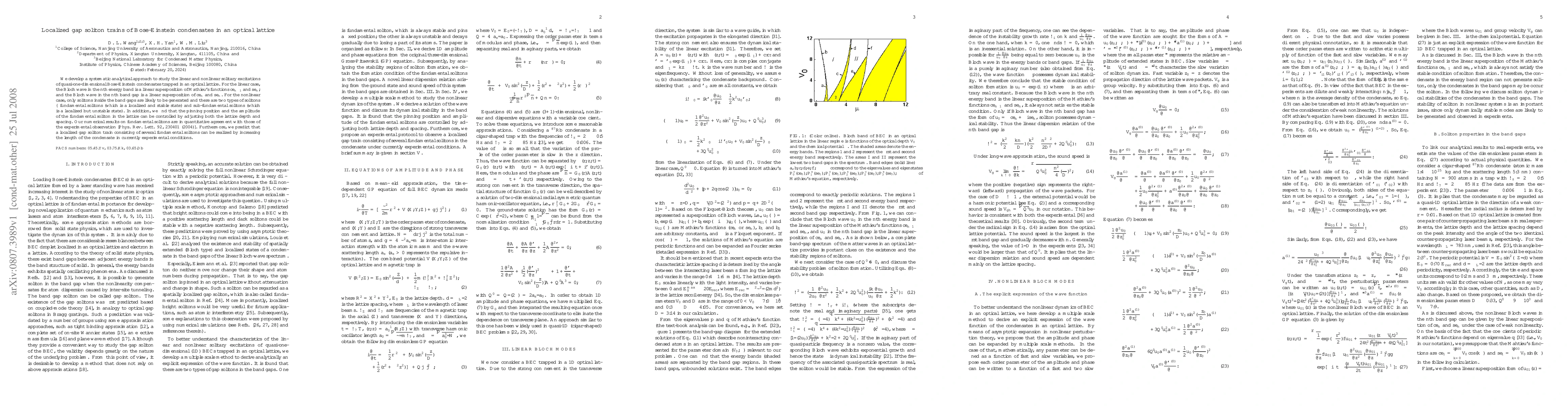 This paper develops an analytical approach to study linear and nonlinear solitary excitations in quasi-one-dimensional Bose-Einstein condensates in an optical lattice. It identifies two types of solitons in band gaps and demonstrates control over soliton pinning position and amplitude via lattice adjustments.