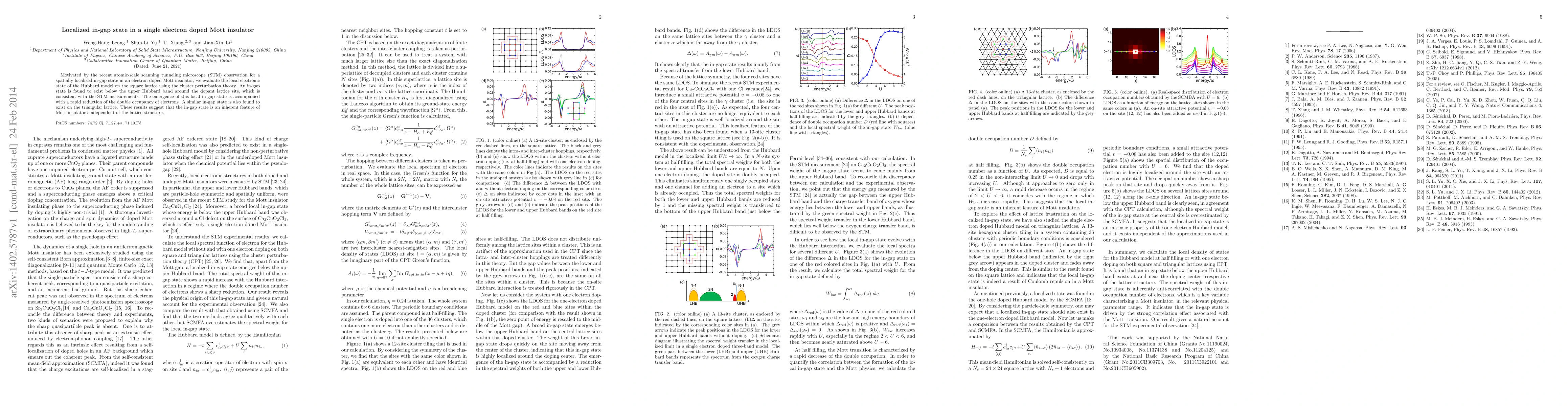 Motivated by the recent atomic-scale scanning tunneling microscope (STM) observation for a spatially localized in-gap state in an electron doped Mott insulator, we evaluate the local electronic state of the Hubbard model on the square lattice using the cluster perturbation theory. An in-gap state is found to exist below the upper Hubbard band around the dopant lattice site, which is consistent with the STM measurements. The emergence of this local in-gap state is accompanied with a rapid reduction of the double occupancy of electrons. A similar in-gap state is also found to exist on the triangular lattice. These results suggest that the in-gap state is an inherent feature of Mott insulators independent of the lattice structure.