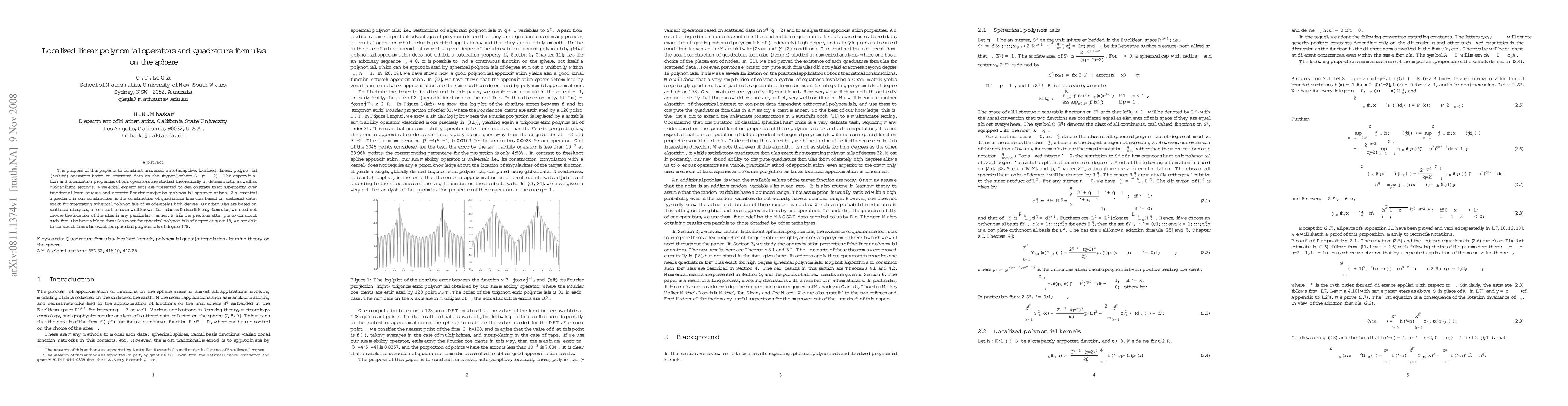 This paper presents localized, linear polynomial operators for scattered data on the sphere, offering improved approximation over traditional methods. It introduces novel quadrature formulas for spherical polynomials of high degree, surpassing previous methods in accuracy and flexibility by achieving exactness up to degree 178.