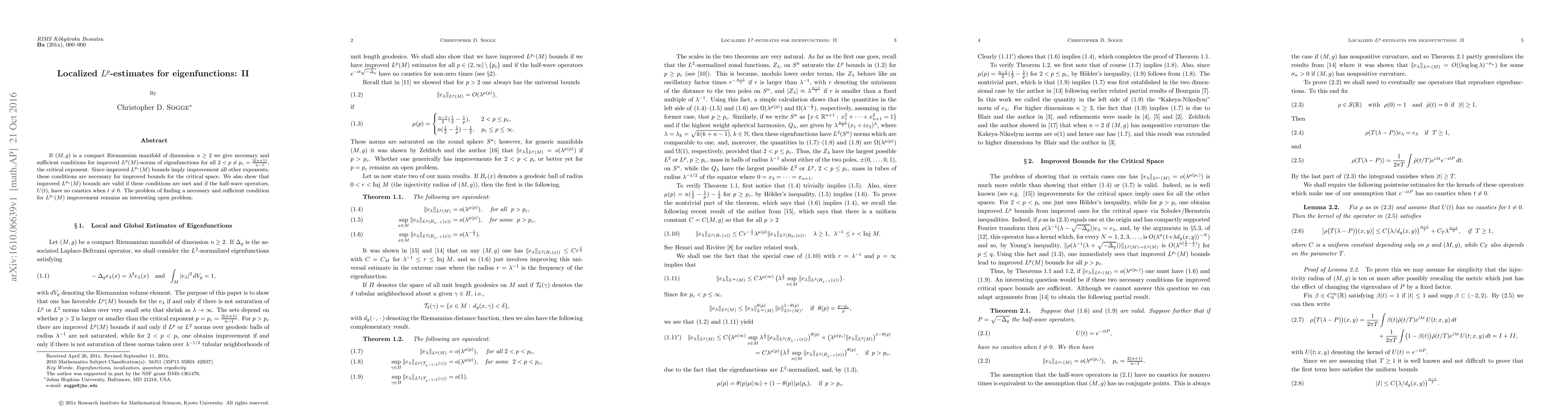 If $(M,g)$ is a compact Riemannian manifold of dimension $n\ge 2$ we give necessary and sufficient conditions for improved $L^p(M)$-norms of eigenfunctions for all $2