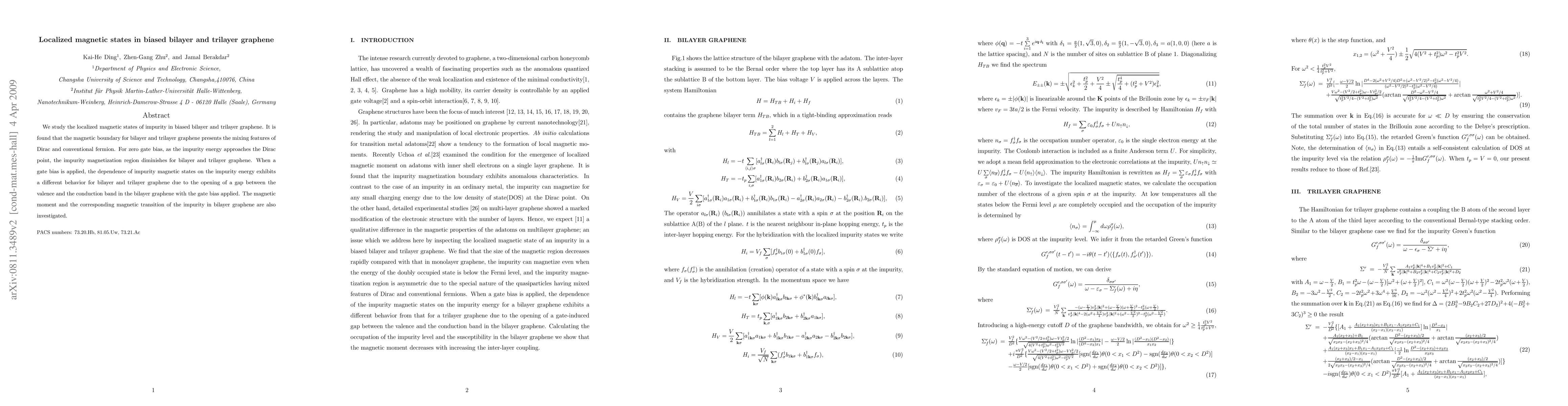 This paper investigates localized magnetic states in impurity-doped biased bilayer and trilayer graphene, finding that magnetic boundary features mix Dirac and conventional fermion characteristics. For zero gate bias, impurity magnetization near the Dirac point decreases; with gate bias, magnetic state behavior diverges between bilayer and trilayer graphene due to band gap opening in bilayer graphene.