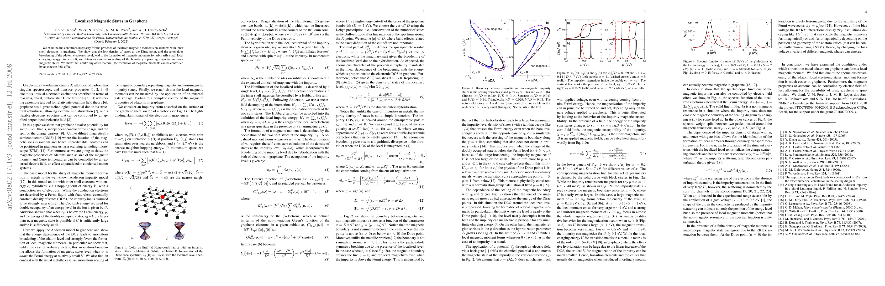This paper investigates the conditions for localized magnetic moments on adatoms in graphene, revealing that low density of states and electronic level broadening enable magnetic moments even with minimal charging energy. The study finds that magnetic states in graphene can be uniquely controlled by an electric field.