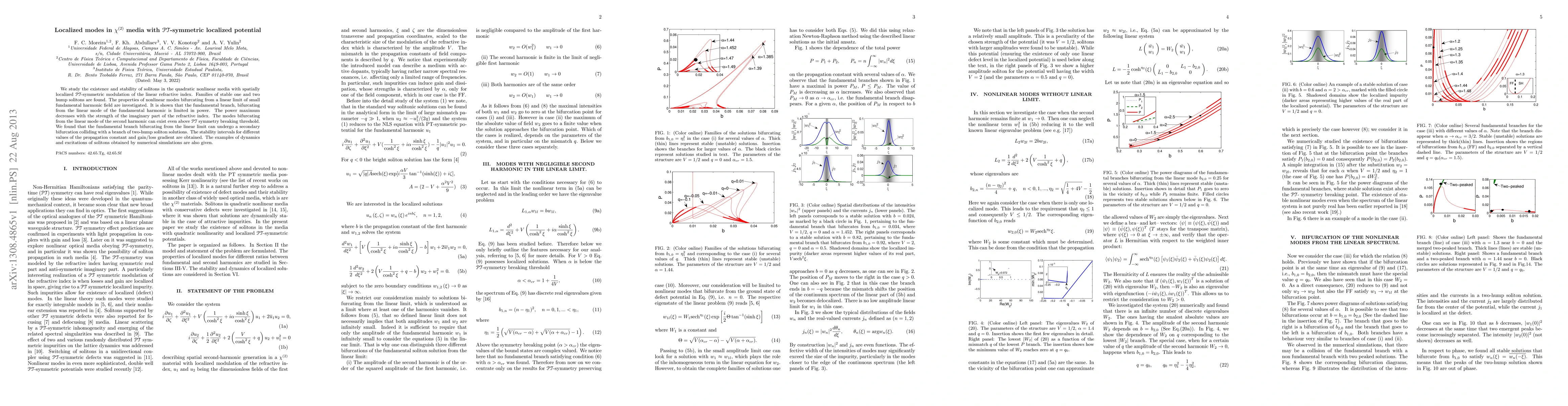 This paper investigates soliton stability in $\chi^{(2)}$ nonlinear media with localized $\PT$-symmetric potential. It finds stable one and two hump solitons, with the fundamental branch limited in power, decreasing with the imaginary refractive index strength, and secondary bifurcations occurring with two-hump solitons. Stability intervals are determined, and numerical simulations demonstrate soliton dynamics.