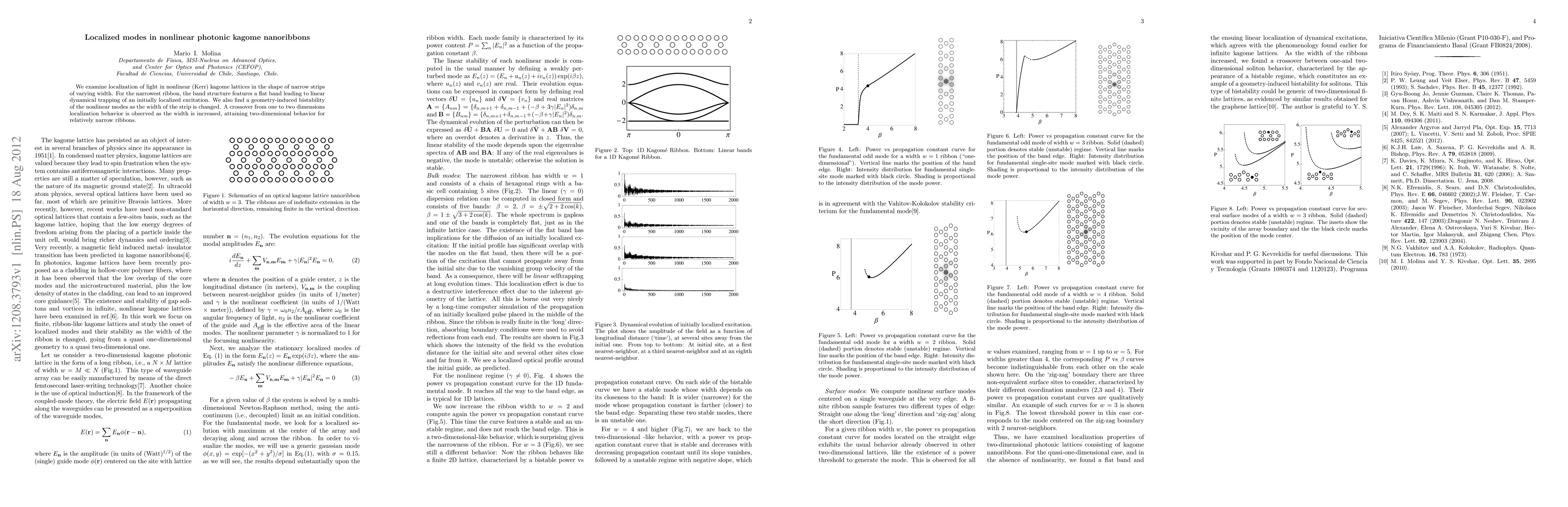 Researchers studied how light behaves in narrow strips of a special material called kagome nanoribbons, finding that they can trap and stabilize light in unique ways as the strip's width changes.