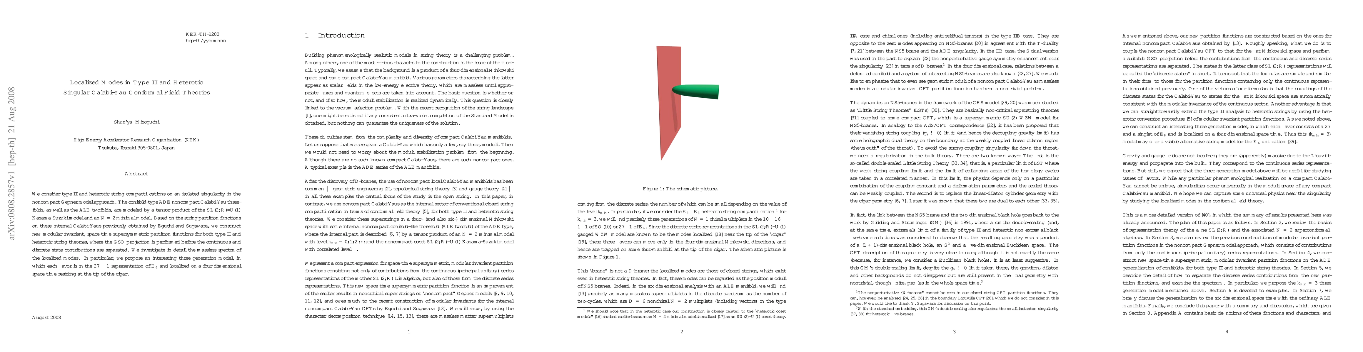 We consider type II and heterotic string compactifications on an isolated singularity in the noncompact Gepner model approach. The conifold-type ADE noncompact Calabi-Yau threefolds, as well as the ALE twofolds, are modeled by a tensor product of the SL(2,R)/U(1) Kazama-Suzuki model and an N=2 minimal model. Based on the string partition functions on these internal Calabi-Yaus previously obtained by Eguchi and Sugawara, we construct new modular invariant, space-time supersymmetric partition functions for both type II and heterotic string theories, where the GSO projection is performed before the continuous and discrete state contributions are separated. We investigate in detail the massless spectra of the localized modes. In particular, we propose an interesting three generation model, in which each flavor is in the 27+1 representation of E6 and localized on a four-dimensional space-time residing at the tip of the cigar.