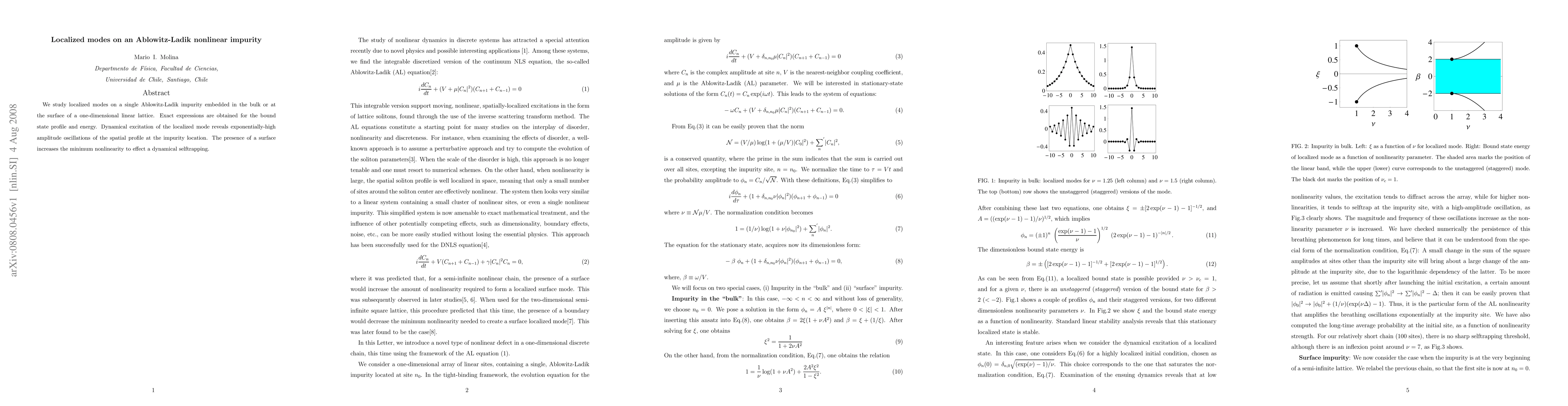 We study localized modes on a single Ablowitz-Ladik impurity embedded in the bulk or at the surface of a one-dimensional linear lattice. Exact expressions are obtained for the bound state profile and energy. Dynamical excitation of the localized mode reveals exponentially-high amplitude oscillations of the spatial profile at the impurity location. The presence of a surface increases the minimum nonlinearity to effect a dynamical selftrapping.