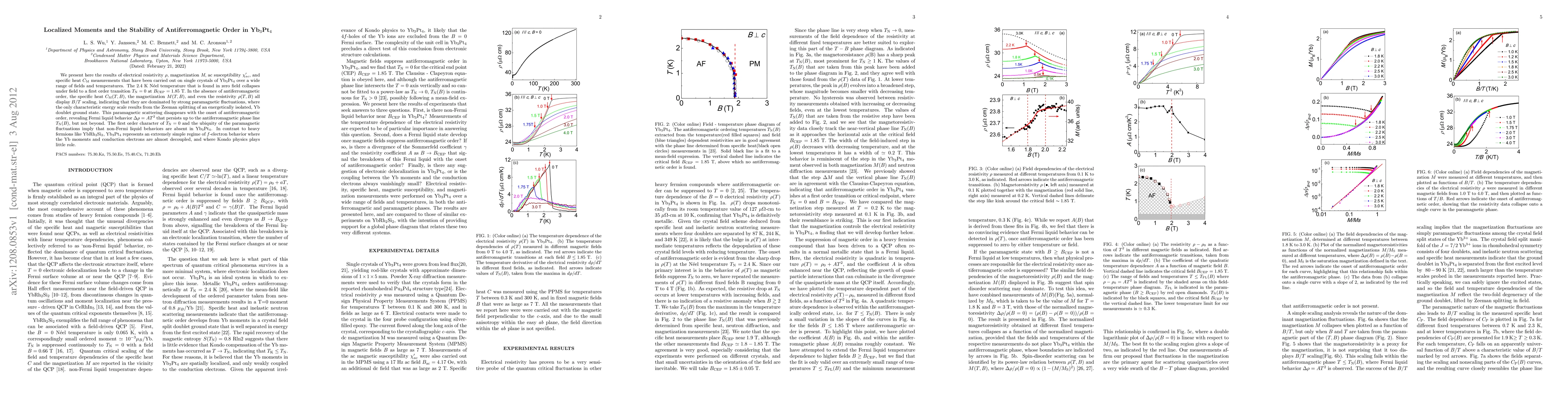 We present here the results of electrical resistivity {\rho}, magnetization M, ac susceptibility \c{hi}ac', and specific heat CM measurements that have been carried out on single crystals of Yb3Pt4 over a wide range of fields and temperatures. The 2.4-K N\'eel temperature that is found in zero field collapses under field to a first-order transition TN=0 at BCEP=1.85 T. In the absence of antiferromagnetic order, the specific heat CM(T,B), the magnetization M(T,B), and even the resistivity {\rho}(T,B) all display B/T scaling, indicating that they are dominated by strong paramagnetic fluctuations, where the only characteristic energy scale results from the Zeeman splitting of an energetically isolated, Yb doublet ground state. This paramagnetic scattering disappears with the onset of antiferromagnetic order, revealing Fermi liquid behavior {\Delta}{\rho}=AT2 that persists up to the antiferromagnetic phase line TN(B), but not beyond. The first-order character of TN=0 and the ubiquity of the paramagnetic fluctuations imply that non-Fermi-liquid behaviors are absent in Yb3Pt4. In contrast to heavy fermions such as YbRh2Si2, Yb3Pt4 represents an extremely simple regime of f-electron behavior where the Yb moments and conduction electrons are almost decoupled, and where Kondo physics plays little role.