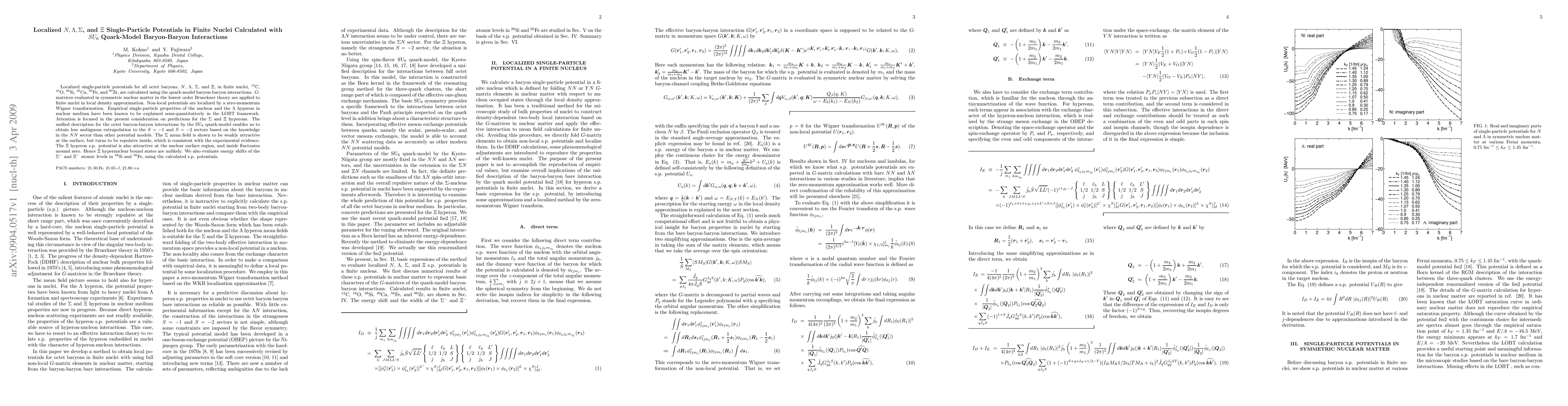 This paper calculates localized single-particle potentials for $N$, $\Lambda$, $\Sigma$, and $\Xi$ baryons in various finite nuclei using the $SU_6$ quark-model baryon-baryon interactions. The $\Sigma$ hyperon potential is weakly attractive at the surface but repulsive inside, while the $\Xi$ hyperon potential is attractive at the surface but fluctuates around zero, suggesting unlikely $\Xi$ hypernuclear bound states.
