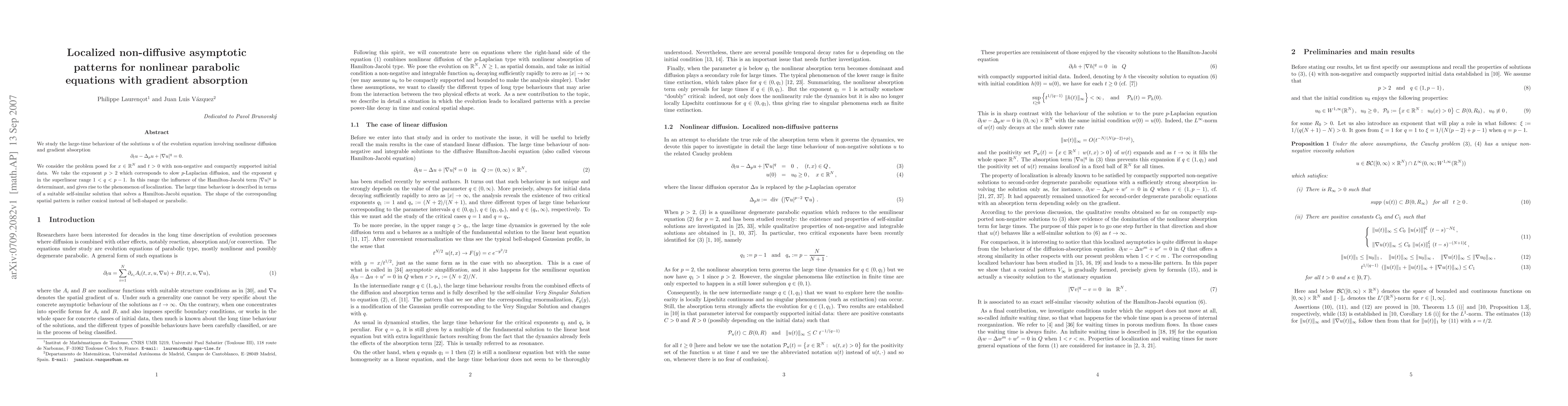 equation involving nonlinear diffusion and gradient absorption $\partial_t u -