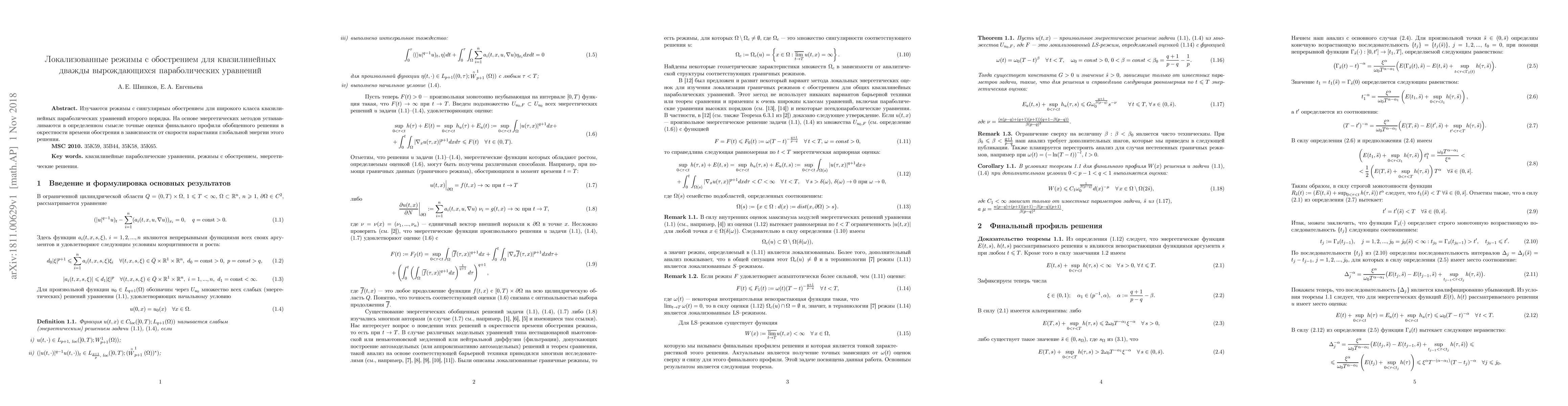 Researchers studied peaking regimes in quasilinear parabolic equations, establishing precise estimates of a final profile based on global energy, to understand how solutions behave near singular peaks.