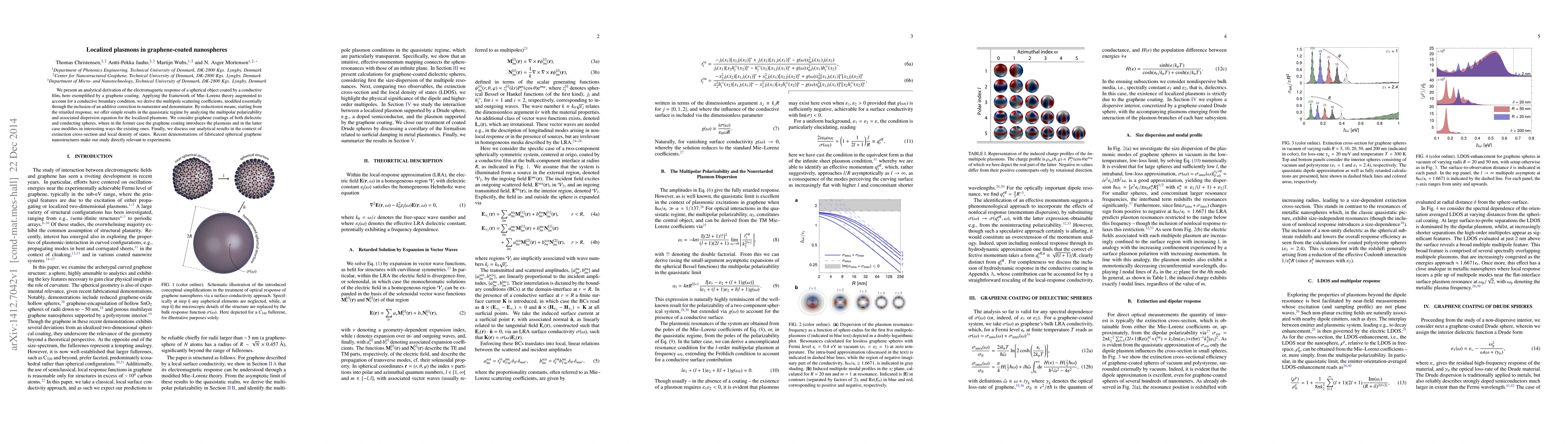 This paper analytically derives the electromagnetic response of graphene-coated nanospheres using Mie-Lorenz theory, focusing on localized plasmons and their effects on scattering coefficients. The study provides insights into the interaction of graphene with both dielectric and conducting spheres, relevant for recent experimental fabrications.