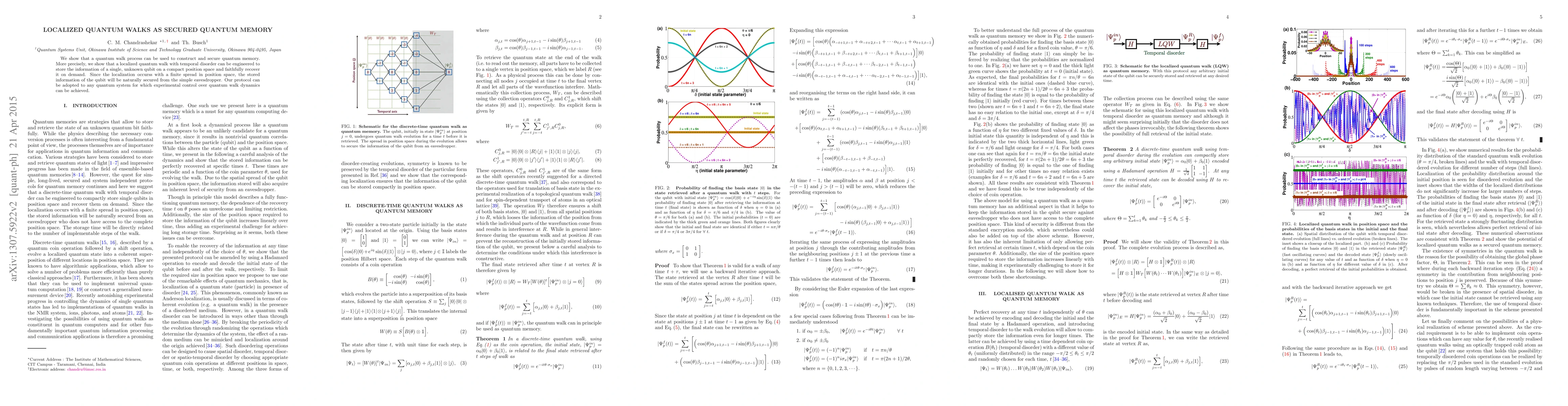 We show that a quantum walk process can be used to construct and secure quantum memory. More precisely, we show that a localized quantum walk with temporal disorder can be engineered to store the information of a single, unknown qubit on a compact position space and faithfully recover it on demand. Since the localization occurss with a finite spread in position space, the stored information of the qubit will be naturally secured from the simple eavesdropper. Our protocol can be adopted to any quantum system for which experimental control over quantum walk dynamics can be achieved.
