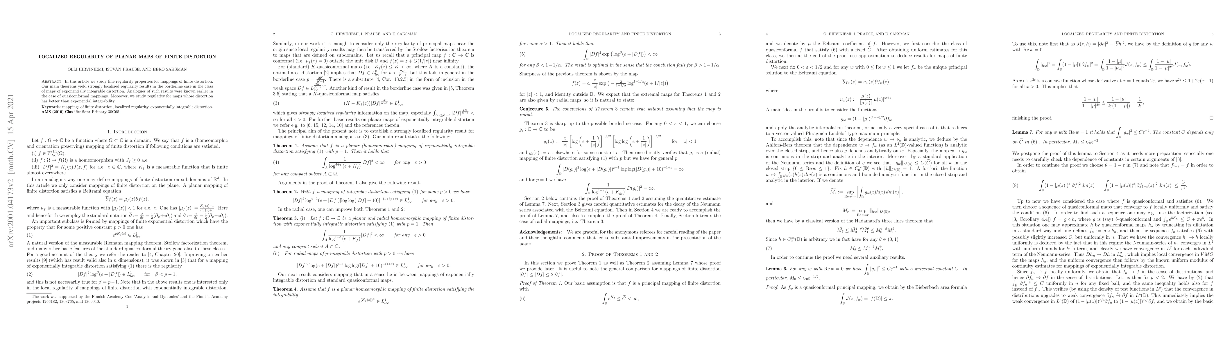 This paper investigates fine regularity properties for planar maps of finite distortion, providing localized regularity results in the borderline case of exponentially integrable distortion. It extends earlier quasiconformal mapping results and also examines maps with higher exponential integrability of distortion.