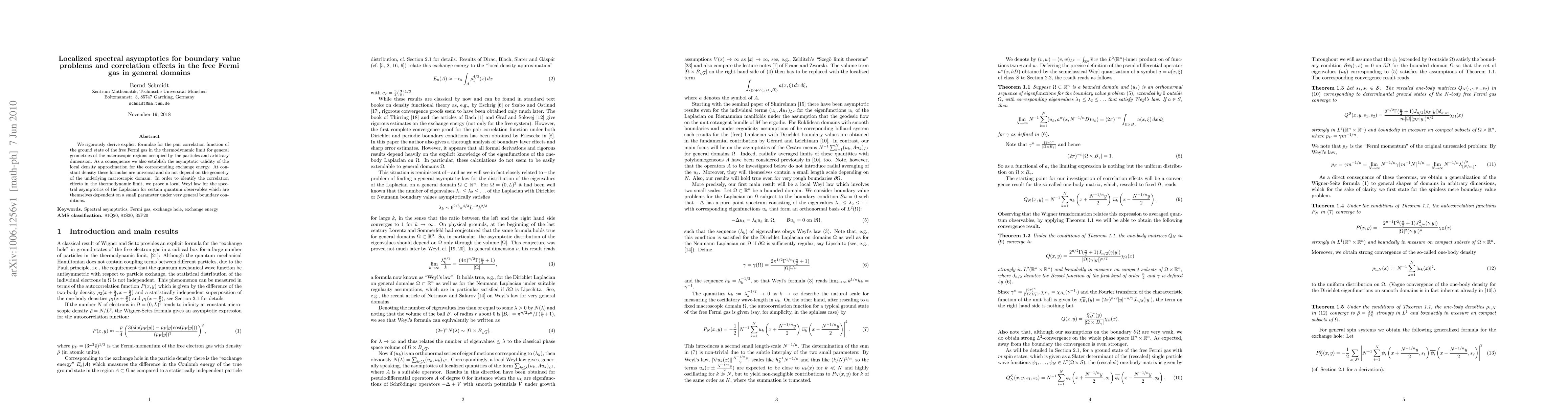 We rigorously derive explicit formulae for the pair correlation function of the ground state of the free Fermi gas in the thermodynamic limit for general geometries of the macroscopic regions occupied by the particles and arbitrary dimension. As a consequence we also establish the asymptotic validity of the local density approximation for the corresponding exchange energy. At constant density these formulae are universal and do not depend on the geometry of the underlying macroscopic domain. In order to identify the correlation effects in the thermodynamic limit, we prove a local Weyl law for the spectral asymptotics of the Laplacian for certain quantum observables which are themselves dependent on a small parameter under very general boundary conditions.
